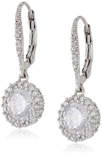 • Sterling silver earrings featuring cubic zirconia drops with a halo of smaller stones