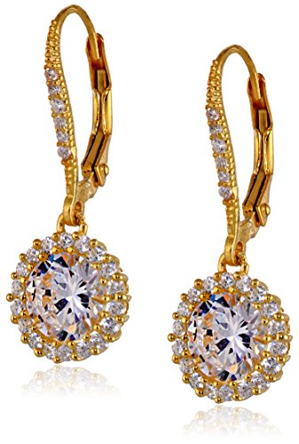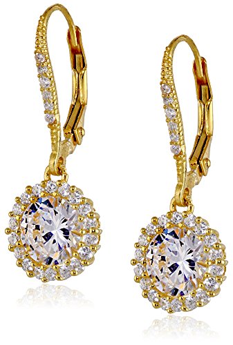 Sterling Silver Gold-Tone Round Shaped Lever Back Cubic Zirconia Earrings (4.15 cttw)
