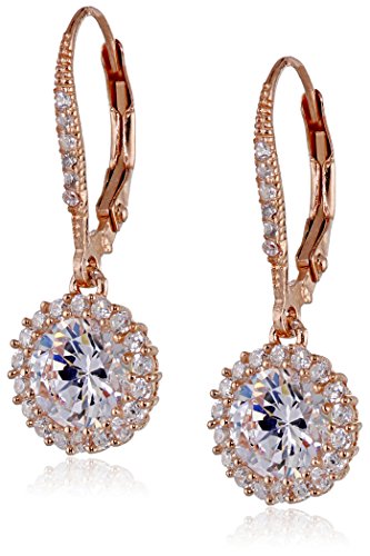 Sterling Silver Rose-Tone Round Shaped Lever Back Cubic Zirconia Earrings (4.15 cttw)