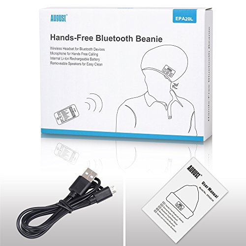 August EPA20 Bluetooth Mutze Winter Beanie mit Bluetooth Stereo Kopfhorer, Mikrofon, Freisprechen und integriertem Akku Kompatibel mit Smartphones, Handys, Tablets, iPhone, i
