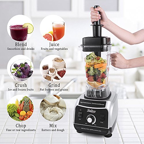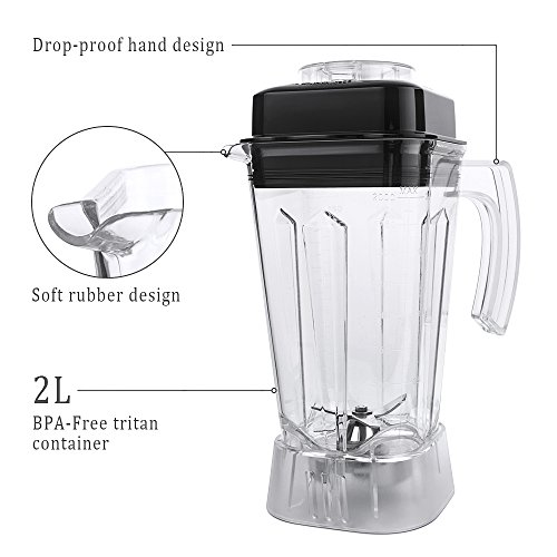 BPA-Free Container & Powerful Motor: Multi-function juicer, 2200W peak power 1500W rated power,28000rpm motor. Speed strong and sturdy container with BPA Tritan, contains 64 ounces(2000ml).