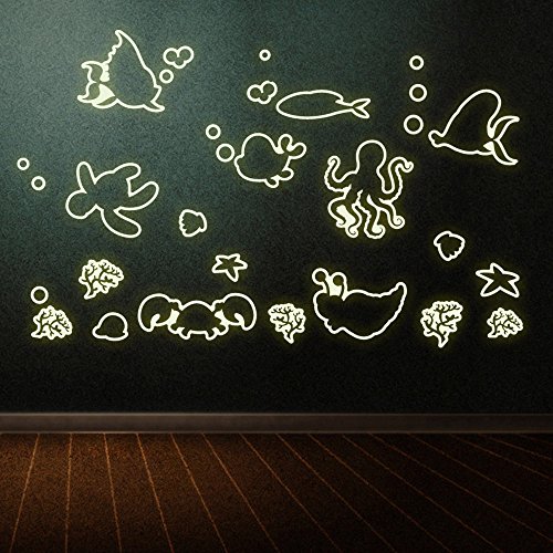 -. Feature : Provides an interesting focal point to any room and bring the outdoors into your home with this wall. / This is a fluorescent wall sticker and there will be two different colors during the day and at night; After irradiation of natural light in the night or in the dark you can see the light in the luminous wall stickers / Easy to apply & re-positionable. Works on any smooth, clean & dry surface / Works on any smooth, clean & dry surface: walls, furniture, accessories, tiles, mirrors, windows etc. / The reference images are just for displaying its effect, and the real size please refer to the entity, and according to your room layout to apply.