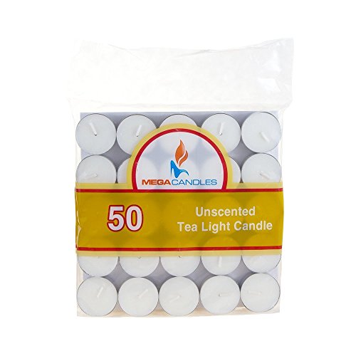 Mega Candles - Unscented All Purpose Tea Light Candles - White, Set of 50