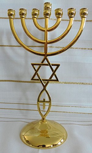 Jewish Messianic Temple Menorah 8.5 inches Tall by Bethlehem Gifts TM (Gold)