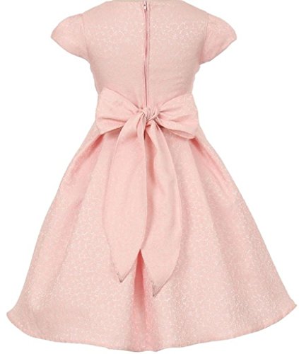 This gorgeous jacquard dress is perfect for any special event. The skirt is pleated at the waist and the pearl jeweled waistline adds another elegant touch to this dress. Perfect for flower girl, junior bridesmaid, Easter, pageant, graduation and other special occasions.Feature