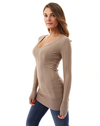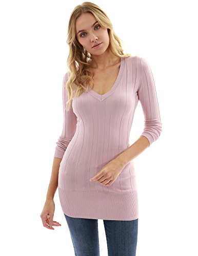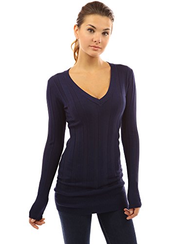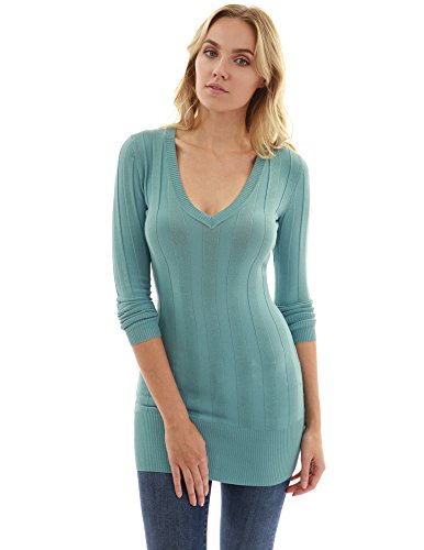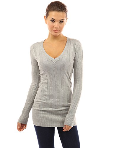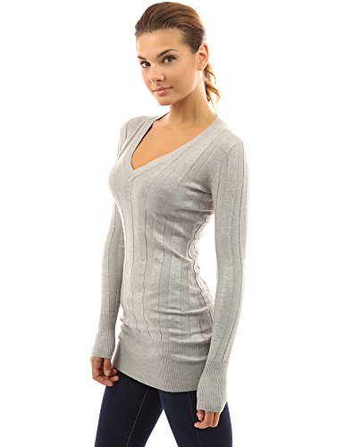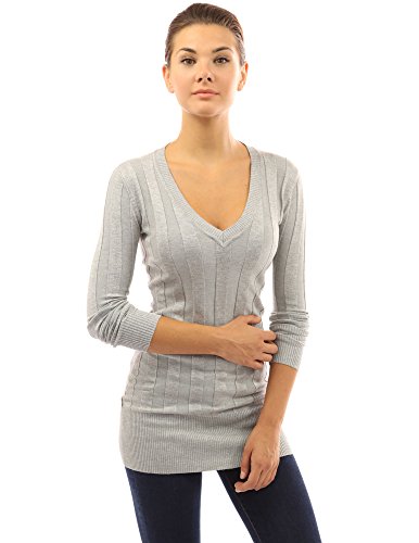 Product DescriptionPattyBoutik V Neck Ribbed Long Sleeve Sweater Tunic Knit Top. Model in pictures is 5 feet 8 inches (173cm) tall wearing size S.0
