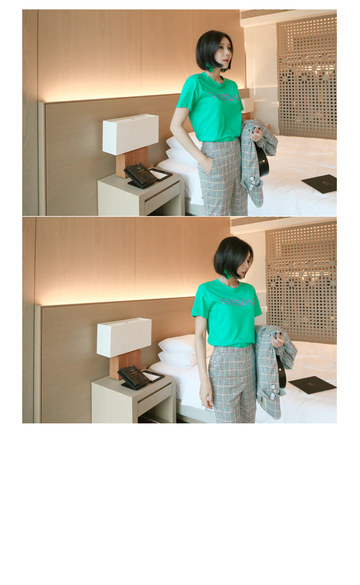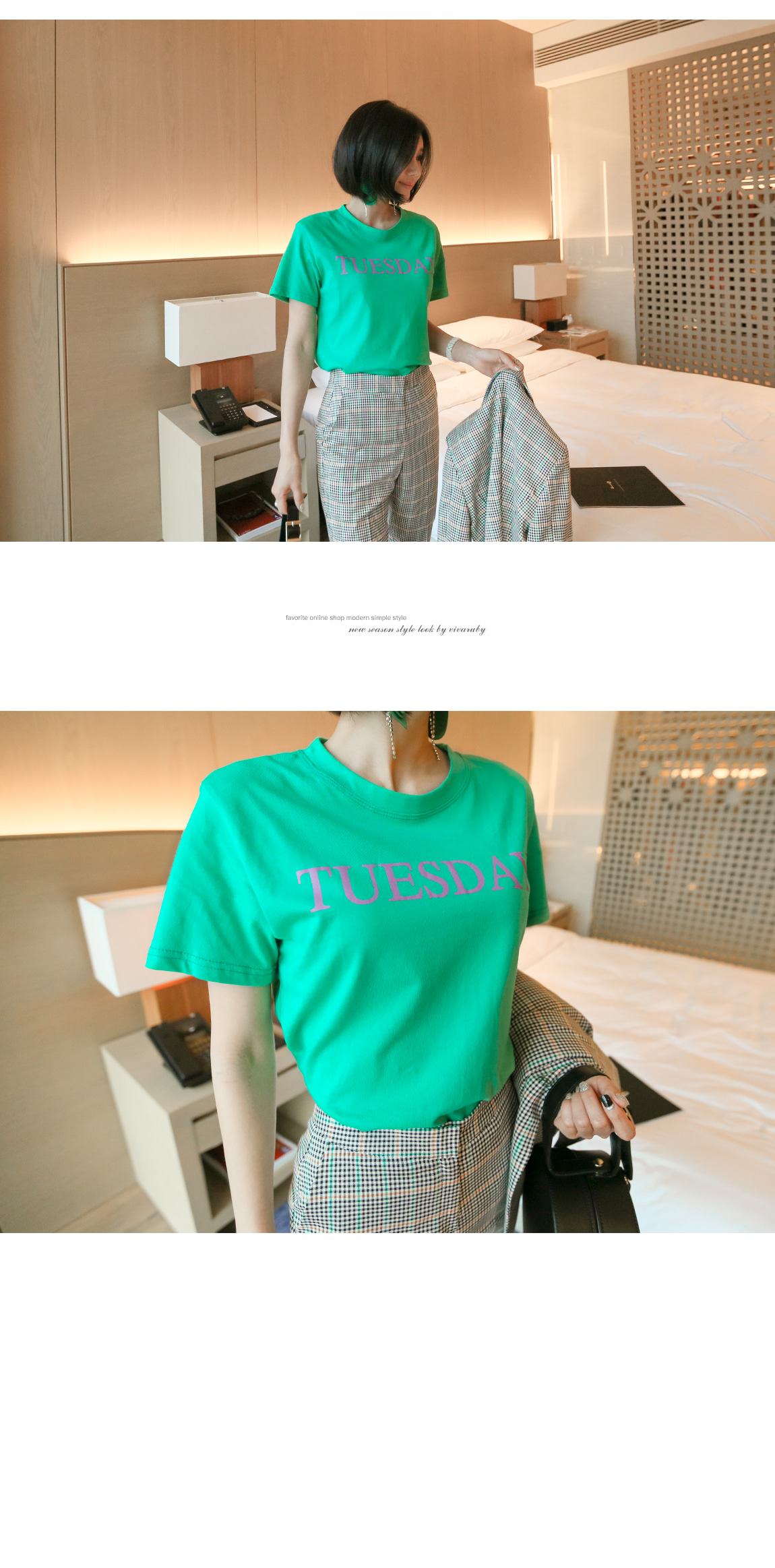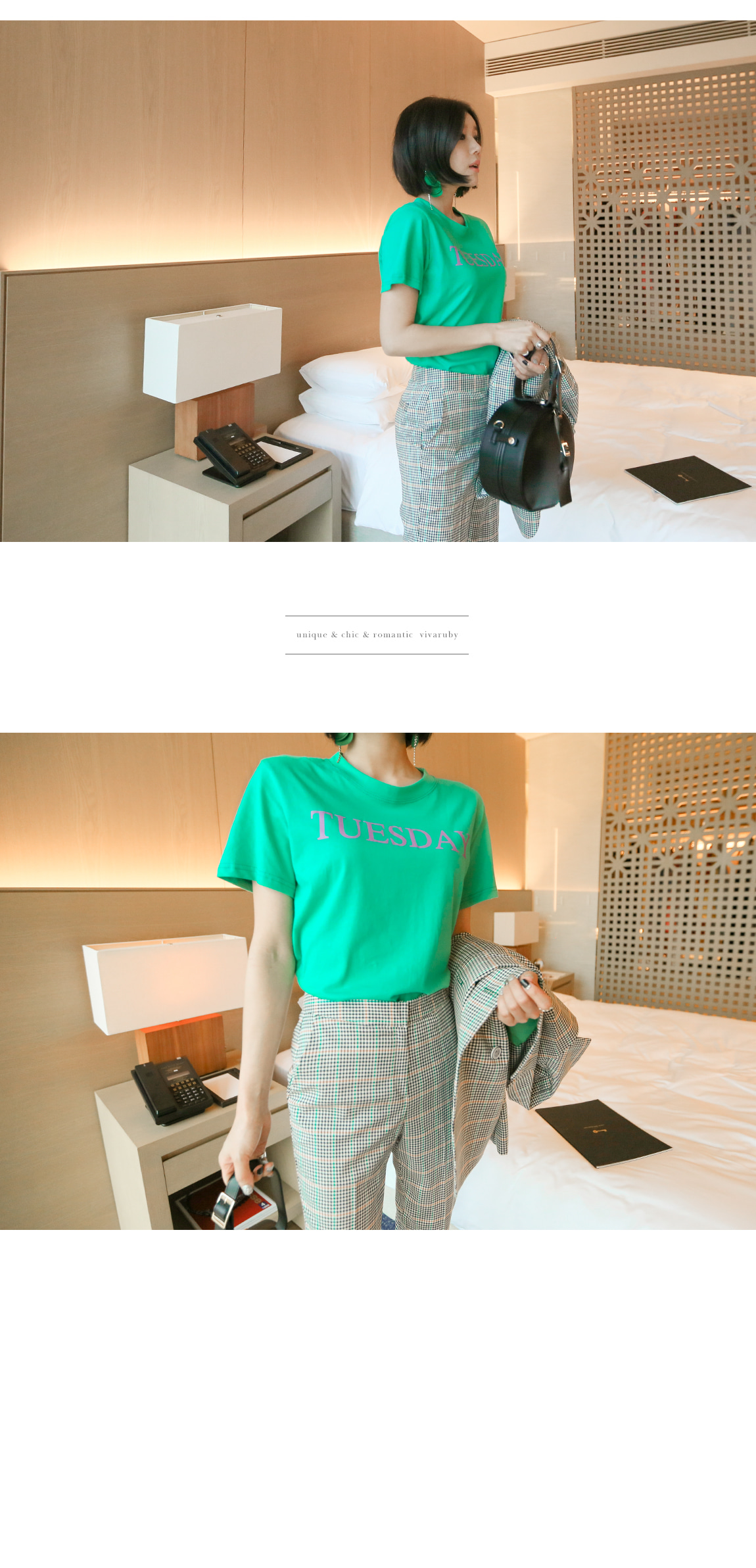 바스트라인의 심플한 레터링 디테일로 트렌디한 포인트를 주었어요