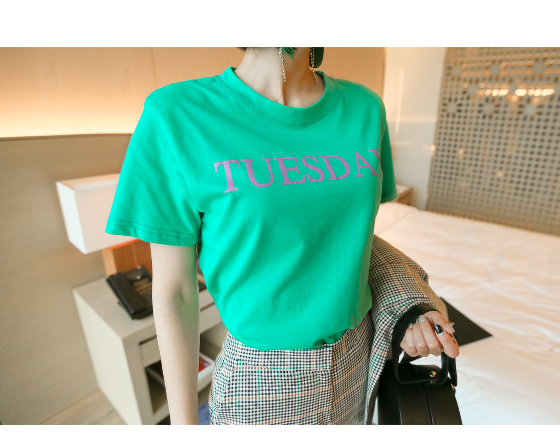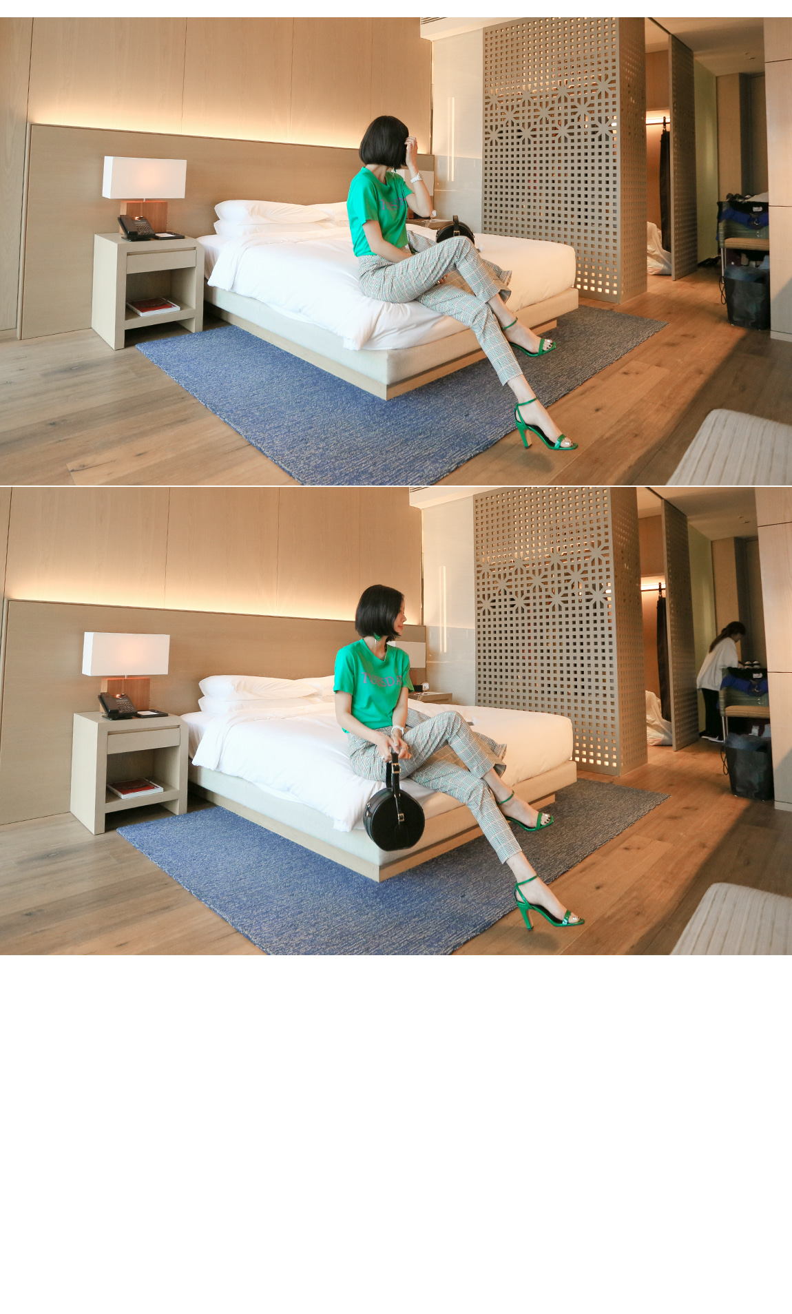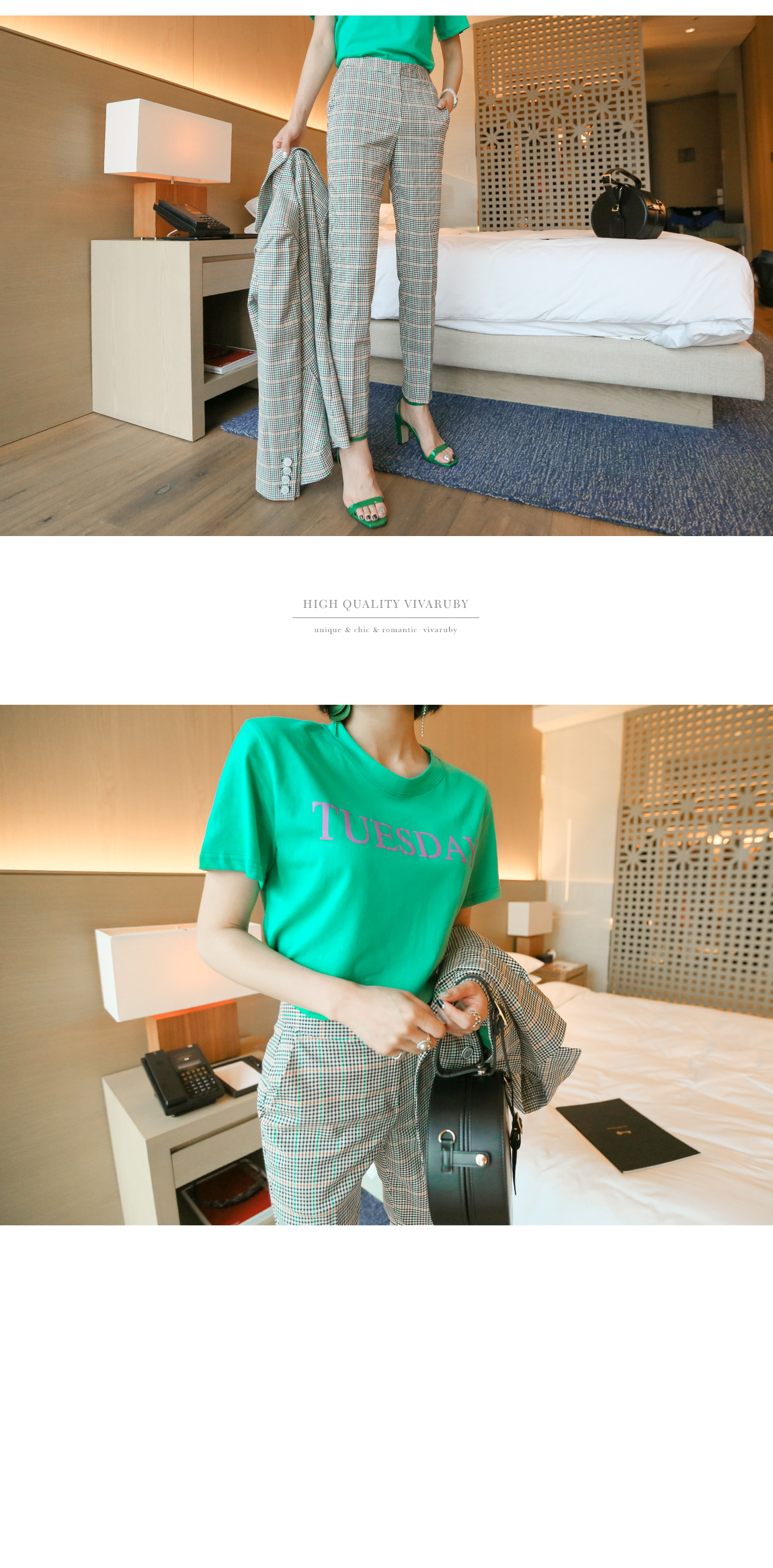 바스트라인의 심플한 레터링 디테일로 트렌디한 포인트를 주었어요