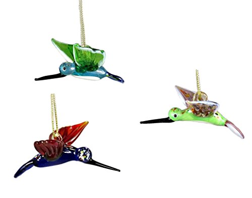 -. Feature : Set of 3 hummingbird ornatments / Material - Glass / Each measures 3" long / Each has it's own colorful design / We've revised the packaging for safe shipping