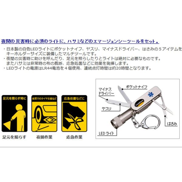 【ツール】白色LED(日本製)ライト、ポケットナイフ、マイナスドライバー、ヤスリ、はさみ