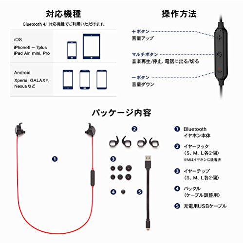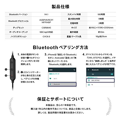 원본상품명: オウルテック Bluetooth ワイヤレスイヤホン マグネットスイッチ 最大8時間再生可能 防水規格IPX4取得 マイク?? 通話可能 低?延 ブラック/レッド 1年保? OWL-BTEP02-BK