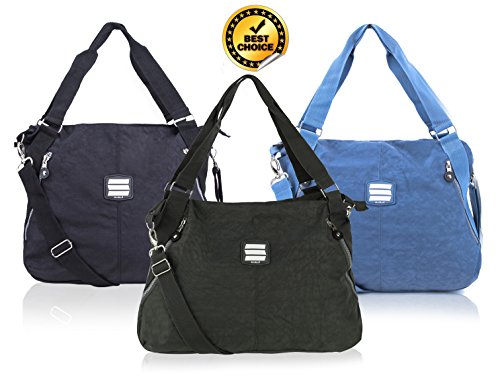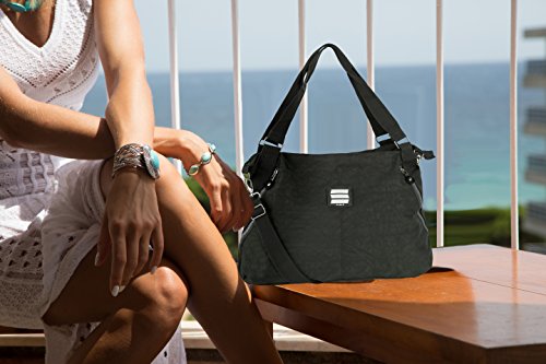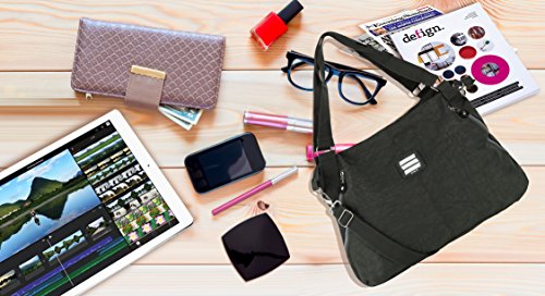 Chic, stylish, practical and roomy enough to fit all your essential, that is what you want from a handbag- that's exactly what you will get with this Suvelle Lightweight Large Tote Travel Everyday Crossbody Bag Multi Pocket Shoulder Handbag, its styled in practical, water resistant crinkle lightweight nylon material. The spacious interior offers plenty of storage to fit an ipad, tablet and your daily essentials, you'll love the classic design with diagonal front zipper pockets accents that adds a hint of edge, the interior is fully lined in easy-to see silver lining and features a back wall zippered pocket, 5 card slots, 2 pen loops, 1 open multi purpose pocket, it's furnished with carrying handles and detachable, adjustable crossbody strap for effortless around-town carrying convenience. The Suvelle Lightweight Large Tote Travel Everyday Crossbody Bag Multi Pocket Shoulder Handbag will go anywhere you need it to go!!!