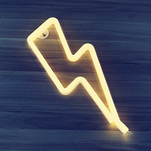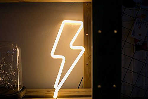 - UNIQUE DESIGN: Cute Neon "Warm White Lightning SIGN" decor light, is a wonderful solution for your little ones room decor. Beautiful and modern decorative Neon lamp.Add vigor to that bed side table with this Neon light decor. It offers romantic ambiance to your place