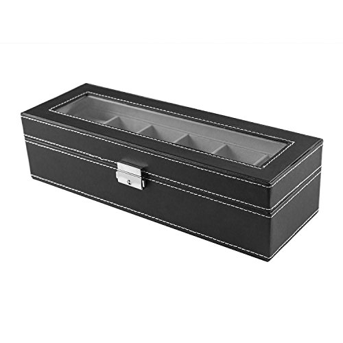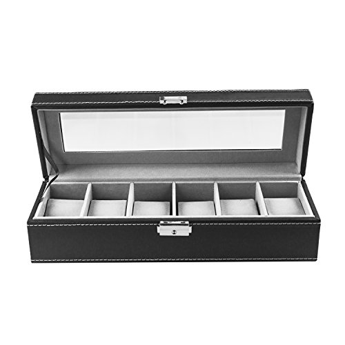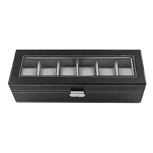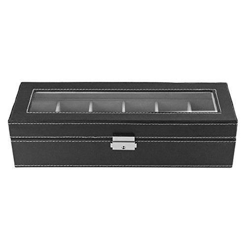Black Wooden Faux Leather Watch Storage Box Display Case & Key Lock for Home Decoration