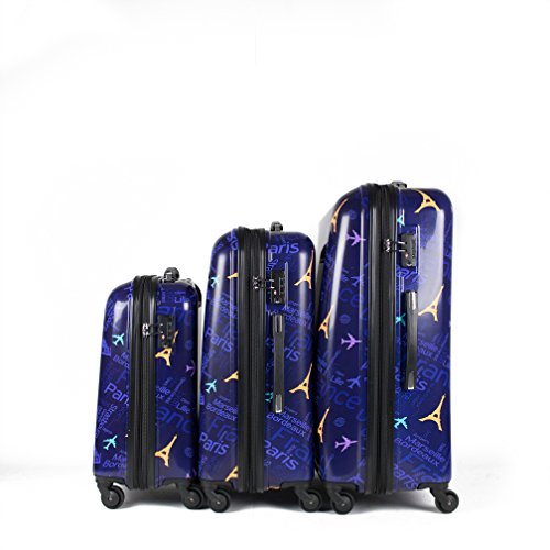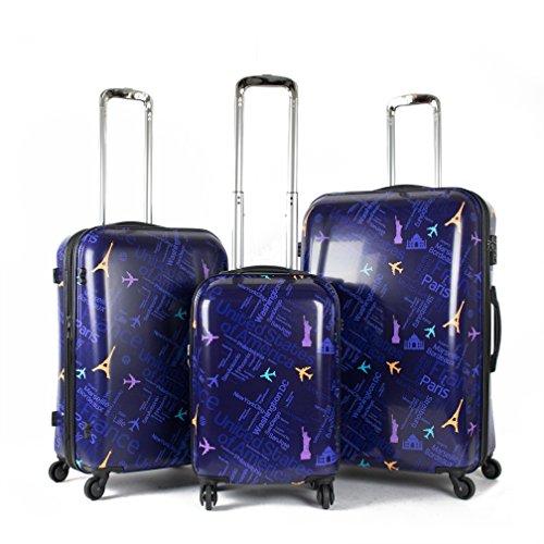 Studio : S E Publisher : S E Product Description Buy yourself this all new travel cases with this USA city design. This is fun and totally durable to carry your stuff. A great item to have. Set includes: 3 Suitcases; 28 inch: 28 x 18.7 x 11 - 10.2 lb. 24 inch: 24 x 16.3 x 9.4 - 8.3 lb. 19 inch: 19 x 13.2 x 8.7 - 6.6 lb.Features: Expandable, Locking, Rolling, Spinner, Fashion, Hardshell, Luggage and Durable | Materials: Plastic, Polycarbonate 0