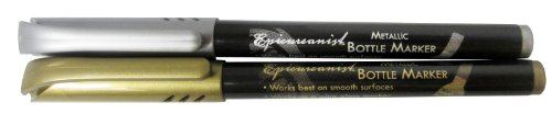 -. Binding : Kitchen -. Brand : Epicureanist -. Color : Silver/Gold -. EAN : 0657433006125 -. Feature : Set of 2 non-toxic metallic ink markers / Works best on smooth surfaces / Dries instantly / Erase with a damp cloth / Can also be used on metal, ceramic, dvds and cds, as well as plastic -. Label : Vinotemp International -. Manufacturer : Vinotemp International -. Model : EP-BOTMARKER -. MPN : EP-BOTMARKER -. PackageQuantity : 2 -. PartNumber : EP-BOTMARKER -. ProductGroup : Kitchen -. ProductTypeName : KITCHEN -. Publisher : Vinotemp International -. Studio : Vinotemp International -. Title : Epicureanist Metallic Wine Bottle Markers -. UPC : 657433006125