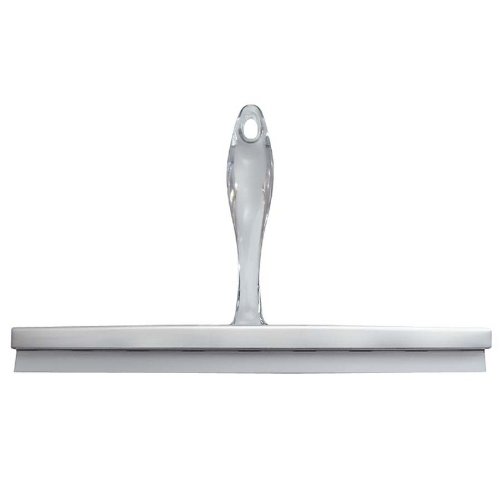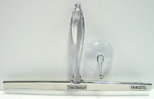 InterDesign Zia Bathroom Shower Door, Window and Mirror Squeegee with Suction Storage Hook - 12", Stainless Steel/Clear