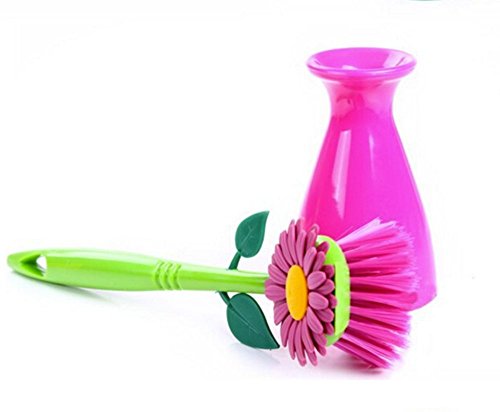 -. Feature : Sun Flower Design Kitchen Scrub Brush / Pot shaped base for storage / High quality durable brush