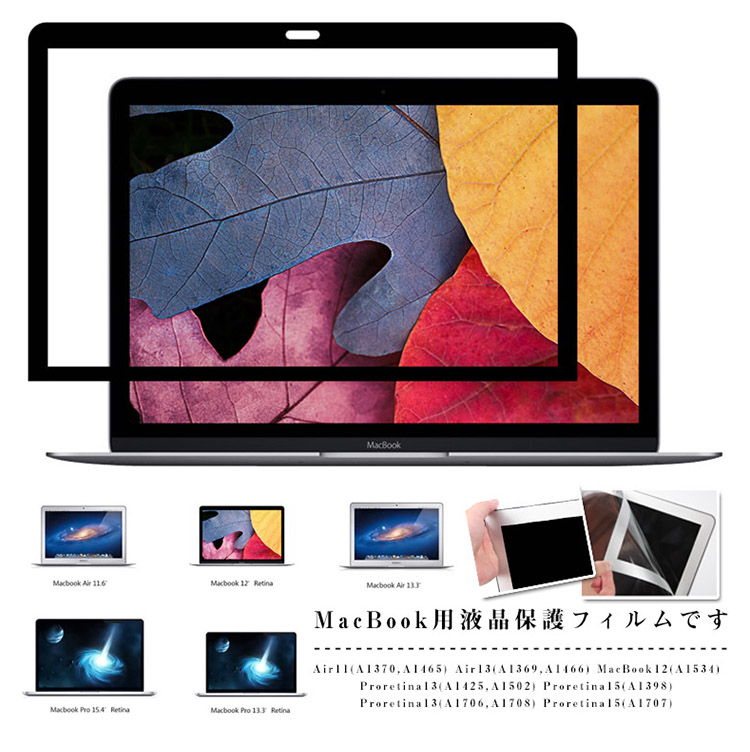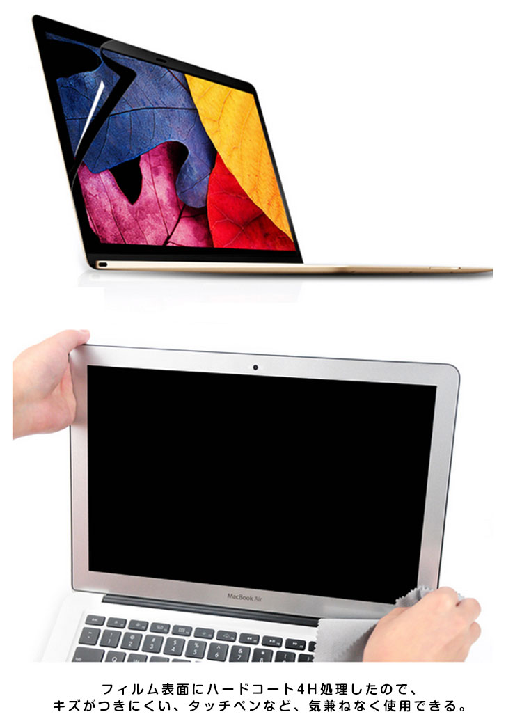 | MacBook用液晶保護フィルムです。Macbook画面が鮮やかで違和感の無い装着感を実現した。液晶画面をキズや汚れから守ります。フィルム表面にハードコート4H処理したので、キズがつきにくい、タッチペンなど、気兼ねなく使用できる。 | |