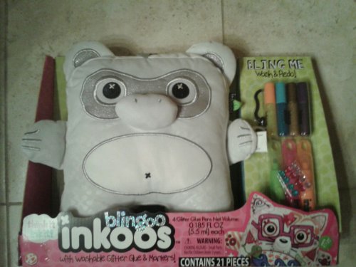 LARGE Blingoo Inkoos Plush MONKEY with Gems, Glitter Glue Pens & Markers - White & Silver