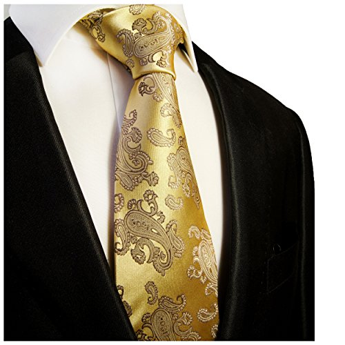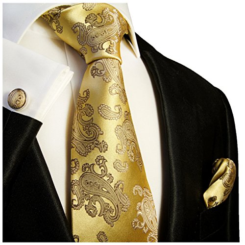 - Title : Gold Paisley Silk Necktie Set by Paul Malone