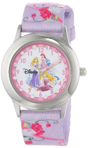 -. Binding : Watch -. Brand : Disney -. Color : Silver/Steel -. Department : girls -. EAN : 0843231063846 -. Feature : Round Time Teacher Stainless Steel Watch with Disney's Rapunzel, Ariel and Aurora characters on dial. / Meets or exceeds all US Govt requirements and regulations for Children's watches. / Recommended for Ages 3-7 years old. Includes a Time Teacher Punch Out clock for Parents to Teach their Children. / Accurate Japanese Quartz movement, scratch resistant mineral crystal, elastic Nylon strap / Water Resistant to 99 feet: withstands rain and splashes of water, but not showering or submersion. / 1 Year Limited Manufacturers Warranty -. Label : Disney -. Manufacturer : Disney -. Model : W000387 -. MPN : W000387 -. NumberOfItems : 1 -. PackageQuantity : 1 -. PartNumber : W000387 -. ProductGroup : Watch -. ProductTypeName : WATCH -. Publisher : Disney -. ReleaseDate : 2012-10-01 -. Studio : Disney -. Title : Disney Kids' W000387 Glitz P.R.Incess Stainless Steel Time Teacher P.R.Inted Strap Watch -. UPC : 843231063846
