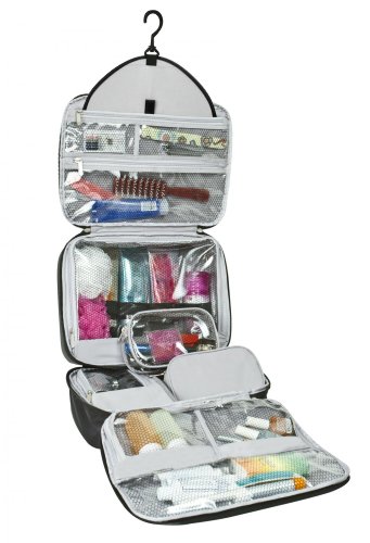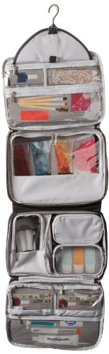 Studio : Travelon Publisher : Travelon Binding : Apparel Product Description This toiletry kit has room for all of your favorite products, with 4 large PVC compartments that hold full sized bottles and wipe clean. 3 pouches, 2 of which are removable give this bag great versitility. Hanging hook allows 360 degree access. Use as a carry on or it folds flat to go into your suitcase. Comes with a removable shoulder strap. For more than 35 years, Travelon has been making travel easier and safer with products that provide protection, peace-of-mind, safety, security and organization 0
