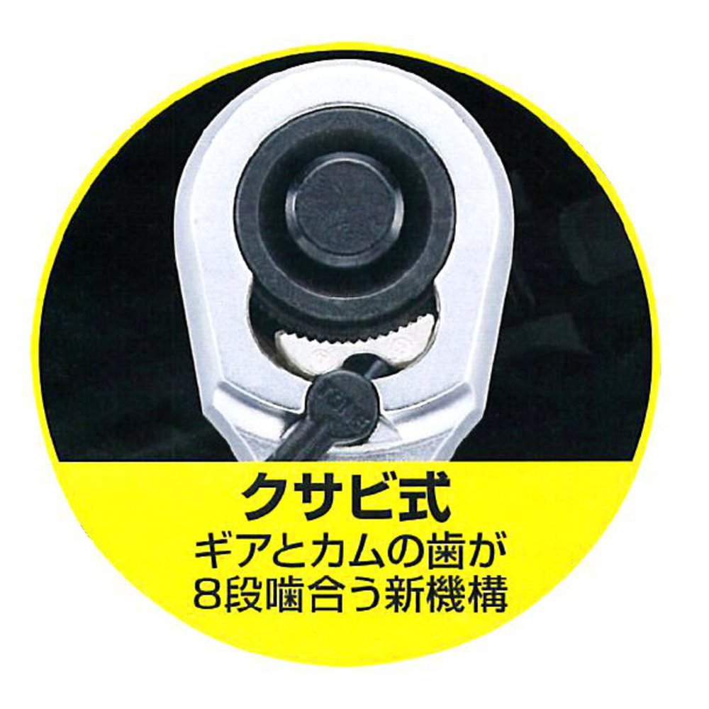Even in a narrow place where it is difficult to work with standard ratchet handles when it is desired to access bolts etc. in a narrow place or even in a narrow place where the swing width is restricted, a new mechanism which can adjust the angle by 15 ° is added every 15 °