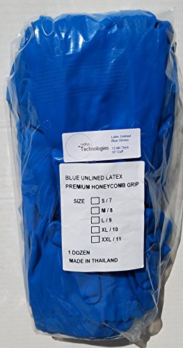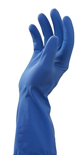 Radius Reusable Blue Unlined Latex Household Kitchen Cleaning Cooking Dish Washing Rubber Gloves - 13 mil, One Pack of 12 Pairs