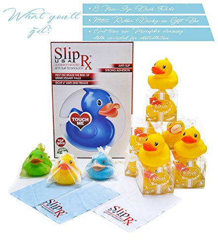 At SlipRxUSA, we think beauty is more than surface deep. We work hard to source responsible materials that are healthy for you, your family and your home. As our company expands here at home and around the world, we are always raising the bar of our environmental and social awareness and responsibility. Our Designs Each of our collections and collaborations draw upon our comfortable, casual aesthetic, and are expertly crafted from the best of materials with an eye for child safety standards. For an extra-special touch, many of our products can be personalized with a name or birth date to turn it into a keepsake you'll always hold on to. Our Passion We believe kids' bathtubs should be every bit as beautiful, stylish and personal as grown-up spaces. After all, they're setting the stage for some of life's most precious moments, from walking to talking. That's why we take great care to design our treads, bath toys and bathroom accessory solutions that are functional yet beautiful, problem-solving yet simple. Our Commitment Every parent wants to feel good about what they put into their kids' bathrooms, so we're dedicated to creating collections that are safe and sound. Our treads are safety tested and built from 100% Environmentally Friendly Non-Toxic materials! ? What you'll get?? 8 Non-Slip Duck Treads ? 2 Baby Blue ? 2 Light Green ? 2 Original Yellow ? 2 Nemo Orange Rubber Ducky Included ??Color of which you receive may vary between powder blue, yellow and green. Microfiber Cleaning Cloth ??One time use Microfiber cleaning cloth included for installation. 0 |