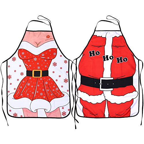 - WORTHY BUNDLE-Comes with 2pcs Novelty design “Wife and Husband“ Christmas aprons. Aprons are vibrant colors adding love, festive, sweet,warm and harmonious elements to your Christmas party either for family or events gathering.