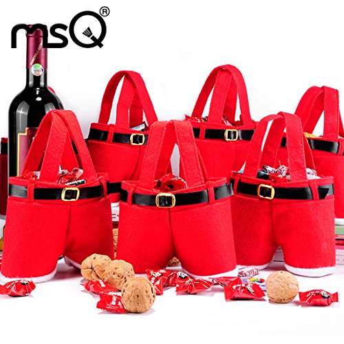 MSQ 6pcs Christmas Gift Bags Christmas Present Candy Bags Santa Pants Style Lovely Treat Bags For Children Lover Best for Wedding Holiday New Year Holiday Christmas Decorations
