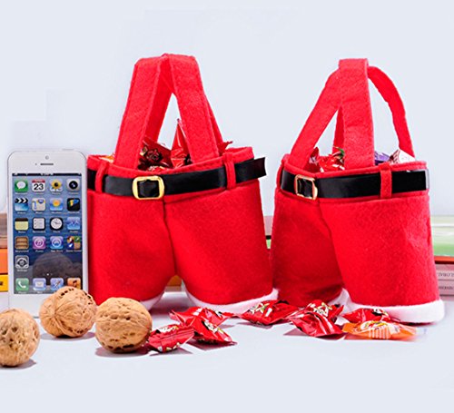 - Cute Bag with Love: Red Christmas gift bag, New Santa's Pants Gift Treat Present Candy Bag is full of your love. Making Your Kids / Family have a Wonderful Christmas! HAVE IT NOW!