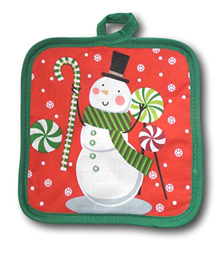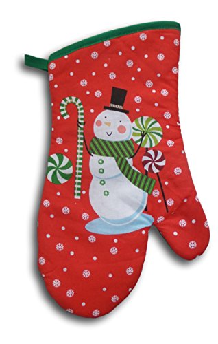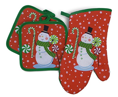 3 Piece Set - Christmas Holiday Kitchen Oven Mitt & One Set of 2 Pot Holders (Snow Man)