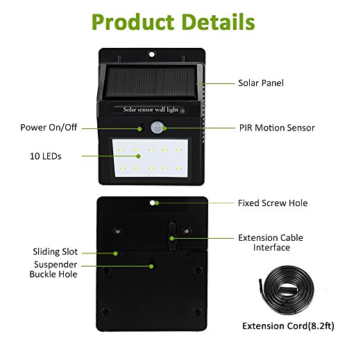 AYY Outdoor Solar Lights, Separable Solar Panel, Waterproof Motion Sensor Security Light 10 LEDS Powered Wall Light with 8' Extension Cord for Indoor, Garden, Fence, Patio, Driveway, Stairs