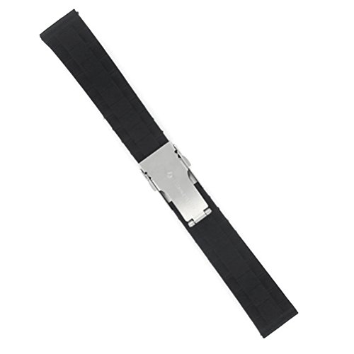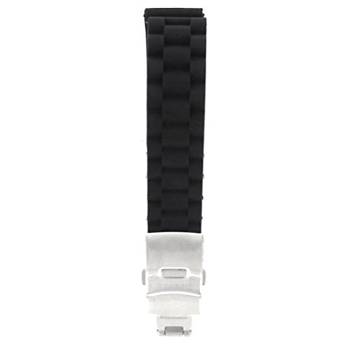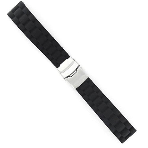 The item is a simple and practical 24mm width soft watch band strap, which is crafted in silicone band and stainless steel deployment clasp with a quick-release mechanism and safety catch for easy and comfortable to wear. Water resistant design makes the watch strap perfect for sports and divers watches. Therefore, it is really a wonderful silicone watch band for choice.