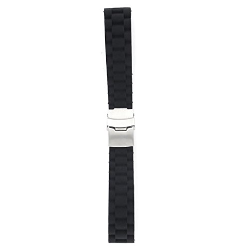 1 * 24mm Waterproof Silicone Watch Band Strap with Stainless Steel Deployment Clasp Buckle (Black)