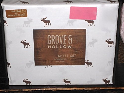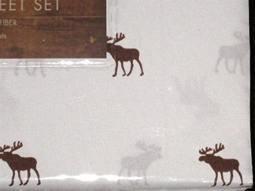 BROWN MOOSE on white 3-pc twin size sheet set (microfiber)