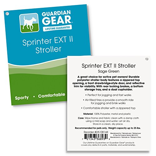 -. Binding : Misc. -. Brand : Guardian -. Feature : Stroller body features mesh panels for ventilation / Large zippered top opening / Removable interior pad / Two secure collar clips / Holds pets up to 25 lbs. -. Label : Pet Any Way LLC -. Manufacturer : Pet Any Way LLC -. Model : ZA1081 77-PARENT -. MPN : ZA1081 77-PARENT -. PackageQuantity : 1 -. PartNumber : ZA1081 77-PARENT -. ProductGroup : Pet Products -. ProductTypeName : PET_SUPPLIES -. Publisher : Pet Any Way LLC -. Studio : Pet Any Way LLC -. Title : Guardian Gear SP.R.Inter EXT II Stroller for Dogs and Cats