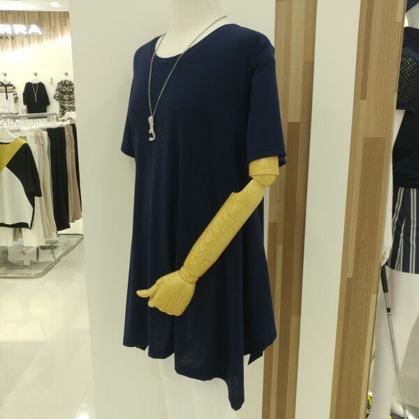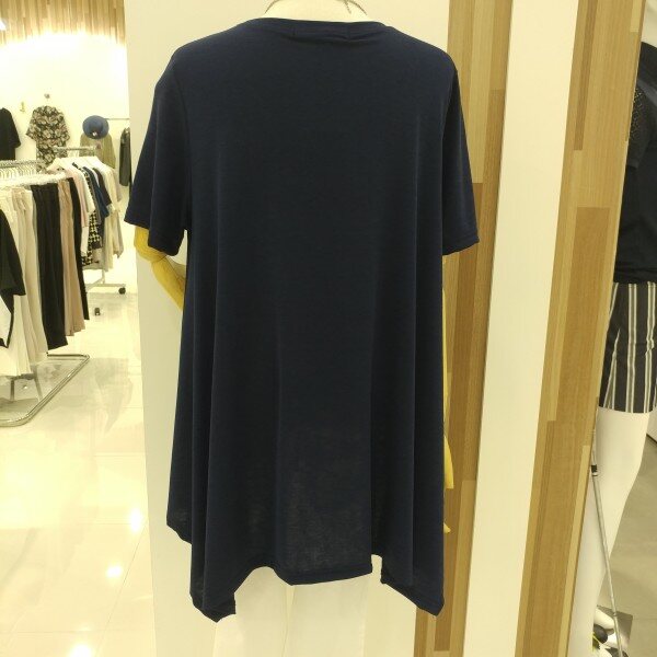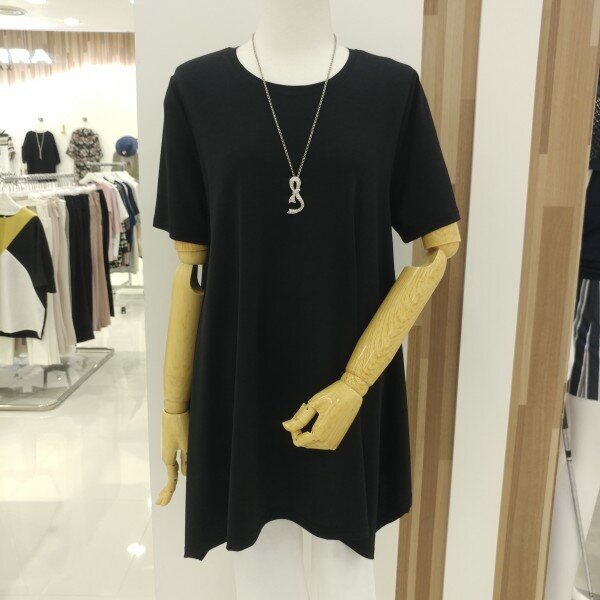 전체 신축성이 편안한 착용감과 함께 기본 루즈핏의 언발런스한 기장감이 슬림해보이는 상체라인을 만들어줍니다