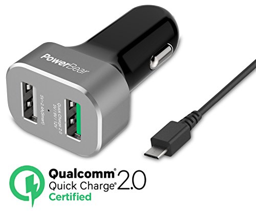 -. Title : PowerBear Dual Port Quick Charge 2.0 Car Charger | Upgraded Version 2-Port USB Car Charger Dual-USB Ultra Fast Car Charger USB [Qualcomm 2.0 Certified] - Black [24 Month Warranty]