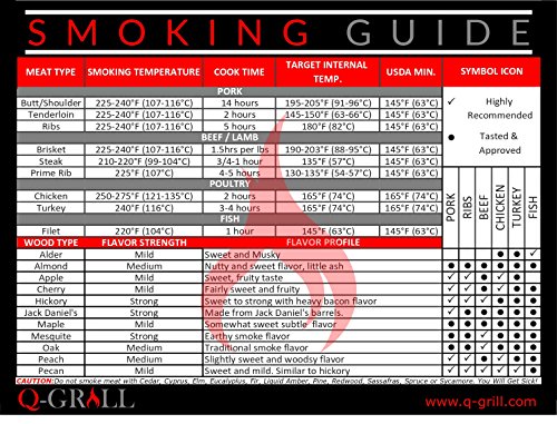 - MEAT TEMPERATURE GUIDE: Reference the smoking temp, target internal temp, USDA minimum temp and cooking suggestions for the most popular meats to smoke! Great BBQ gift idea for Mom or Dad.