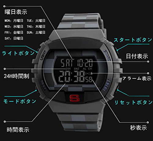 원본상품명: Timever(タイムエバ?)メンズ 腕時計 防水 デジタル表示 スポ?ツウォッチ led watch ストップウォッチ カウントダウン ダブルタイムなどの機能 5ATM防水