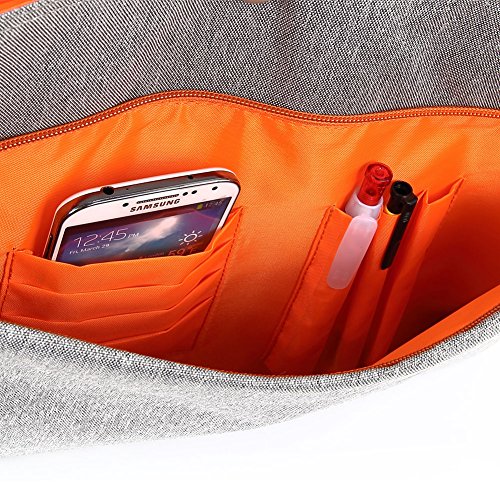 -. Feature : Slim and compact laptop case, perfect for carrying laptops measuring up to 14 inches without any unnecessary bulk / Accessory storage pockets for portable mouse, iPod, mobile phone and pens / Adjustable padded shoulder straps make the laptop messenger comfortable to wear / Material:Linen / External dimensions: 14.57 x 3.15 x 11.42 mm (LxWxH)