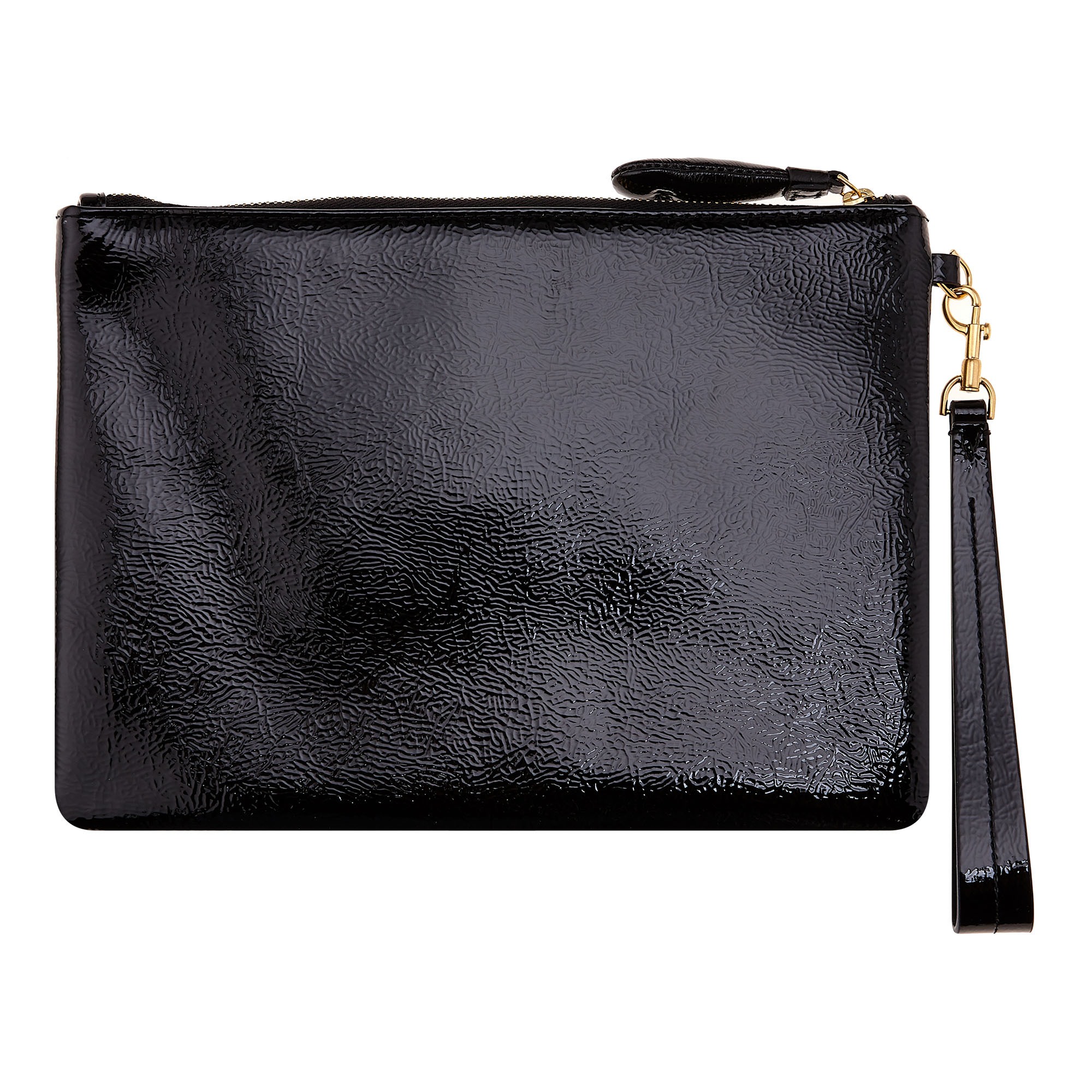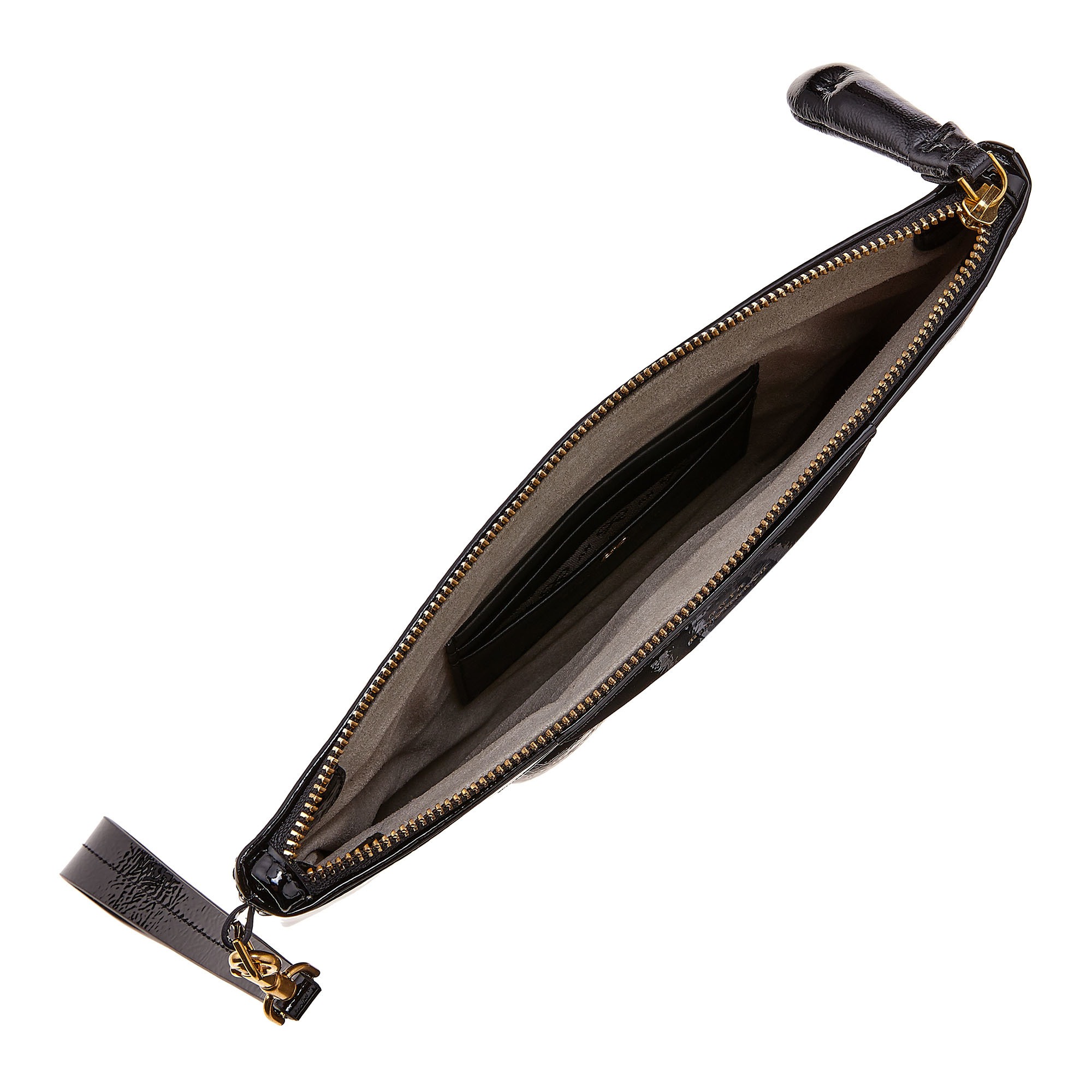 디자인 포인트:처비 윙크 디테일이 돋보이는 위트있는 무드의 집 탑 파우치광택감이 느껴지는 천연 가죽 소재 자체로 포인트가 되는 디자인탈부착 가능한 손목 스트랩 디테일로 실용성을 더한 아이템