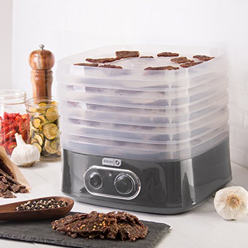 Making homemade jerky, dried fruits, and veggies has never been easier with the Dash Smart Store Dehydrator. Make unprocessed dried foods without added sugar or sulfites, and explore new ways of preserving ingredients for future use. 5 stackable trays create ample capacity for dehydrating a wide variety of ingredients and the trays collapse for easy storage. A temperature dial adjusts the heat in your dehydrator for versatile array of dehydrating options.Feature