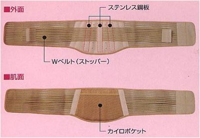 | 商品説明 | 「サロフィックス ウエストベルト」は、カイロや保冷ジェルを入れられる腰部ベルトです。腰部のポケットにカイロや保冷ジェルを入れられるので、冬でも夏でも年中お使いいただけます。Wベルトでしっかり固定し、3本のステンレス鋼版が腰を支えます。 |