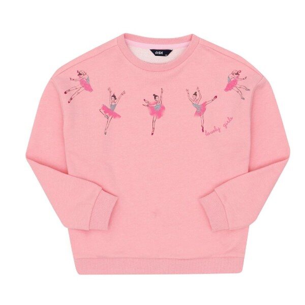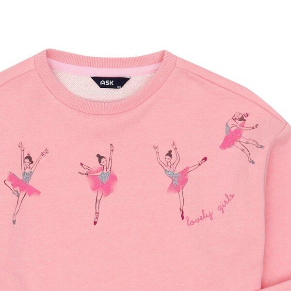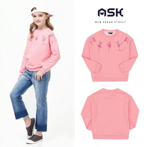 세미드랍 소매 라인의 3단 쮸리 소재 맨투맨 티셔츠. 발레리나 아트윅을 사용하여 걸리쉬함을 강조하였고 스커트와 팬츠에 모두 매치하기 좋은 아이템.