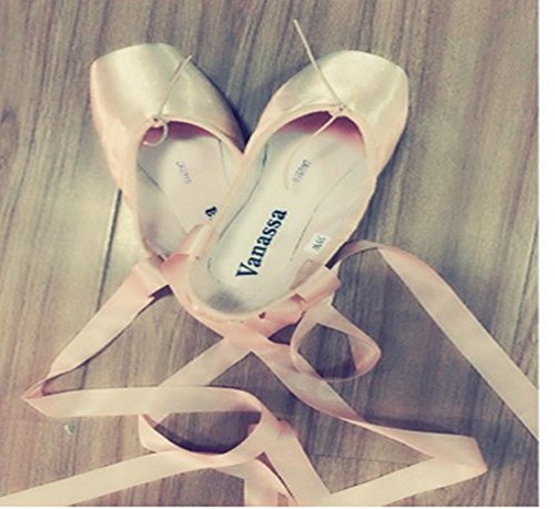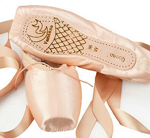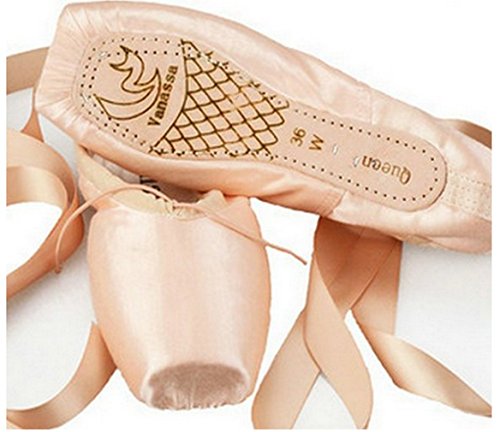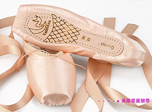 WENDYWU womens Dance Shoe Pink Satin Ballet Pointe Shoes