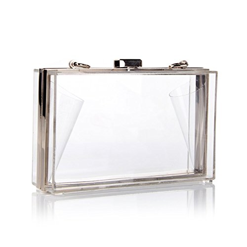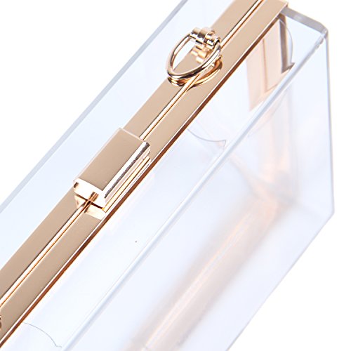 -. Feature : Material:Transparent Clear Acrylic.Golden turn-lock closure. / Size:7"*4.3"*1.96"(LxWxH).Chain full length:46.5-47". / Easy to match and suitable for any style of clothes,suitable for many occasions,can be use as :Evening clutches,shoulder bag ,handbag, evening bag, or crossbody messenger bag. / This shoulder clutch purse is very easy to carry.It can hold for your 6-inch phone, wood sunglasses,cellphone, lipstick, cash and other small items, make you outstanding in the crowd. / Fast delivery and reliable after-sale service, and if you do not like the bag after you get, we promise you can return it and get the full refund.